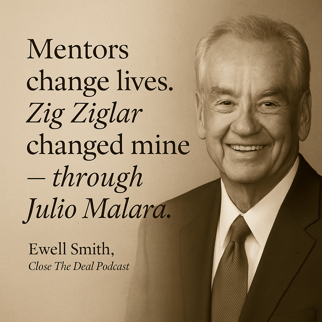 I never met Zig Ziglar, but I’ve felt his impact firsthand. Early in my twenties, I worked with a young guy named Julio Malara, my very first podcast guest back when the show was called Absolutely Mindset. That podcast eventually evolved into Close The Deal Podcast, but the spark started there.